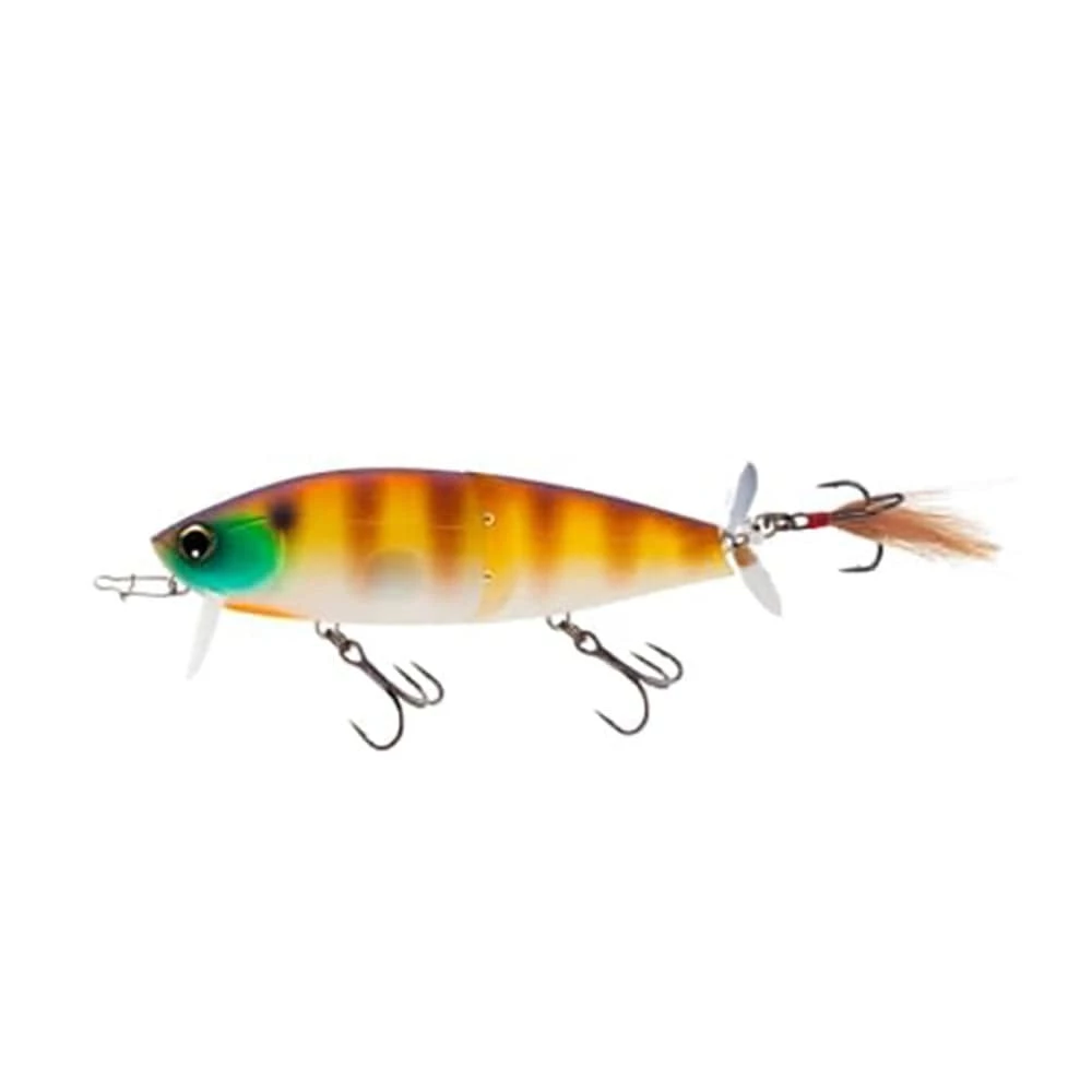 The Yo-Zuri Hardcore Noi-Z 105F is a jointed wake-bait unlike the rest with a trifecta of lifelike action, sound, and flash. Constructed with a double-hinged joint, the Duel Hardcore Noi-Z 0 produces a subtle, silky smooth swimming action that leaves a rolling wake in its path, in combination with the reverse cupped metal prop, tail hook feather and hard-knocking rattle, to provide an onslaught of fish attracting features.